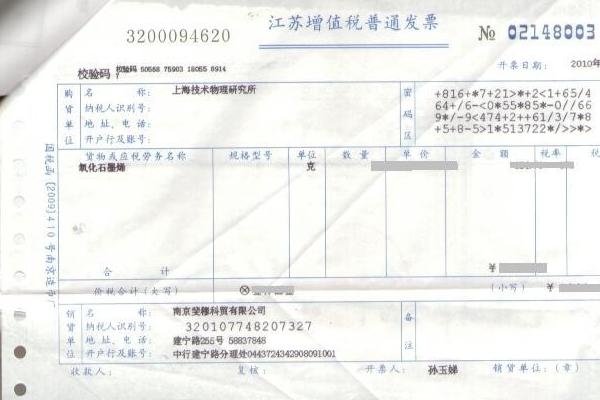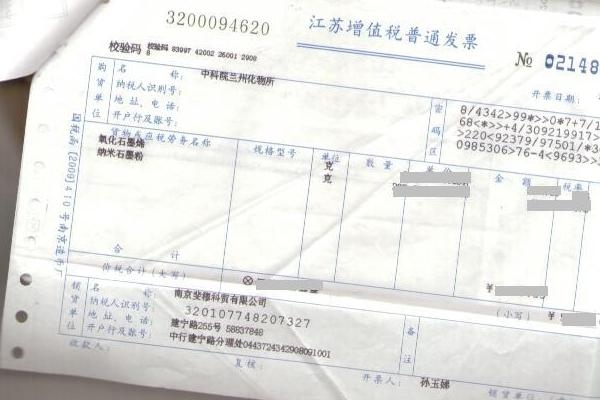 我司是我國最早推出石墨烯產(chǎn)品的公司之一,客戶主要是各大高校和中科院所及英國、美國、韓國、臺灣高校。廣大客戶對我司產(chǎn)品給予廣泛的好評。 為了增進新客戶對我司的了解,特選一小部分發(fā)票公布。