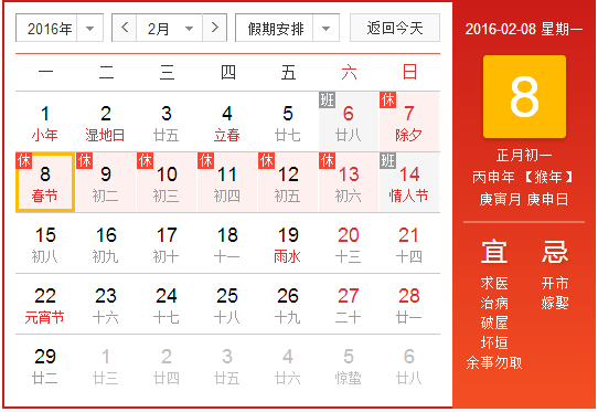 2016年2月7-14日休7天。各單位請(qǐng)注意安排好放假期間的設(shè)備、水、電的安全管理。