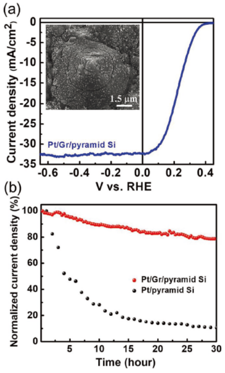 Figure 6.(a)Pt/石墨烯/金字塔Si光陰極的