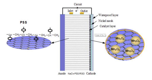 4納米復合材料。它們用于組裝鎂-空氣電池,其中聚(4-苯乙烯磺酸鈉)/還原氧化石墨烯基NaCl電解質(zhì)和還原氧化石墨烯/Mn