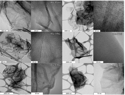 Figure 1. 用不同放大倍數(shù)獲得石墨烯樣品的TEM圖像。