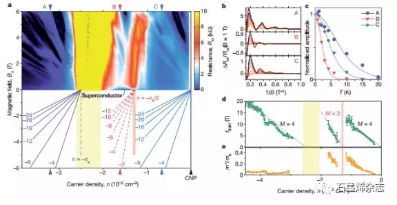 Figure 5.高場(chǎng)下魔角TBG中的量子振蕩情況。