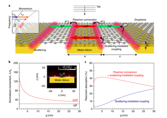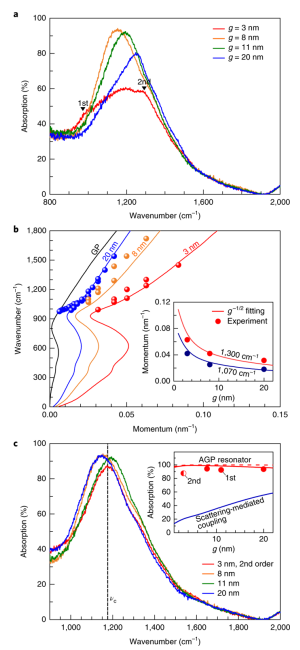 ? 等離子體的一個基本障礙是電磁場約束和自由空間光耦合效率之間的權(quán)衡,這是激發(fā)源和等離子體模之間動量失配過大的結(jié)果。尤其是石墨烯中的聲學(xué)等離子體,具有極高的場限制,以及極端的動量失配。為此,我們表明可以克服這種基本障礙,并展示了一個石墨烯聲學(xué)等離子體共振器,幾乎可以吸收(94%)入射中紅外光。這種高效率是通過利用兩級耦合方案實現(xiàn)的:通過自由空間光耦合到傳統(tǒng)的石墨烯等離子體,然后耦合到超限聲學(xué)等離子體。為實現(xiàn)這一方案,我們將無圖案的大面積石墨烯轉(zhuǎn)移到模板剝離的超扁平金屬帶上。單片集成的光學(xué)間隔物和反射器進一步提高了增強效果。我們發(fā)現(xiàn)石墨烯聲學(xué)等離子體可以分別對ångström厚蛋白和SiO2層中的吸收帶和表面聲子模式進行超靈敏測量。我們的聲學(xué)等離子體諧振器平臺具有可擴展性,可以利用最終水平的光與物質(zhì)的相互作用,用于潛在的應(yīng)用,包括光譜,傳感,超表面和光電子學(xué)。