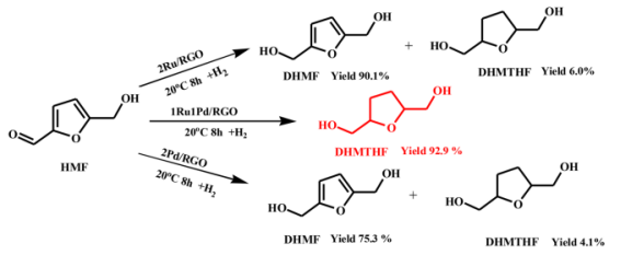 δ+物種。因此,RuPd/RGO催化劑將HMF加氫成DHMTHF的效率高是由于Ru