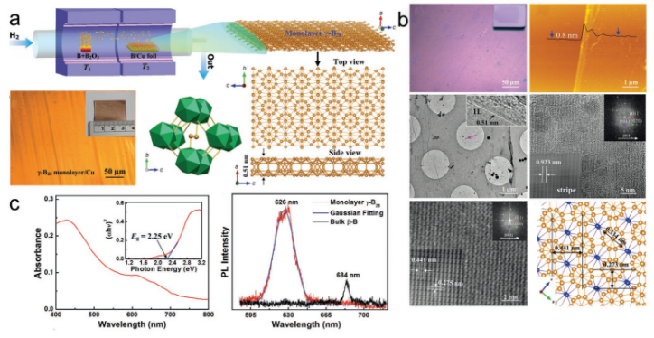 Figure 4. 化學(xué)氣相沉積方法在銅襯底上生長γ-B28硼片的實驗表征。