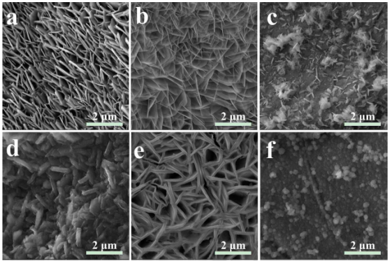 Figure 4.pH對形貌的影響研究以及循環(huán)200圈后的SEM圖。