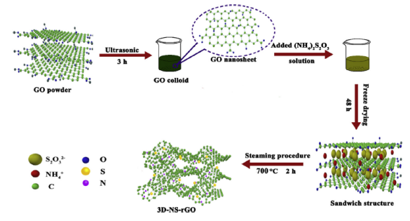 Figure 1.制備3D NS-rGO泡沫的過程示意圖。