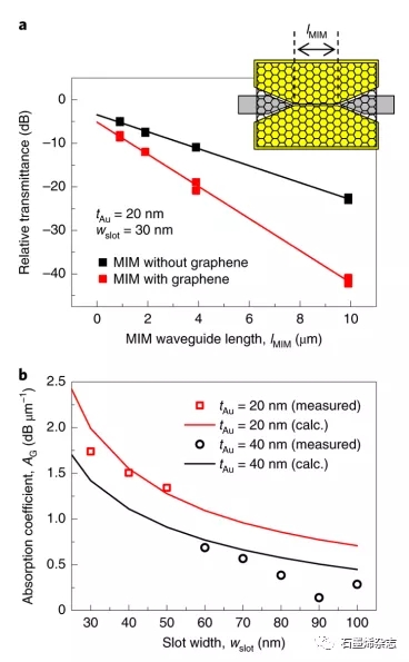 Fig. 3:負(fù)載石墨烯的MIM-WG的線性吸收測量。