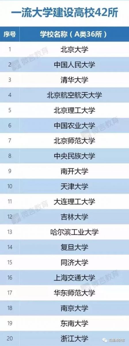 “雙一流”則是兩個平行的評價體系。“一流大學建設高校”重在一流學科基礎上的學校整體建設、重點建設,全面提升人才培養(yǎng)水平和創(chuàng)新能力,共計42所,在原來39所985大學基礎上新增3所。