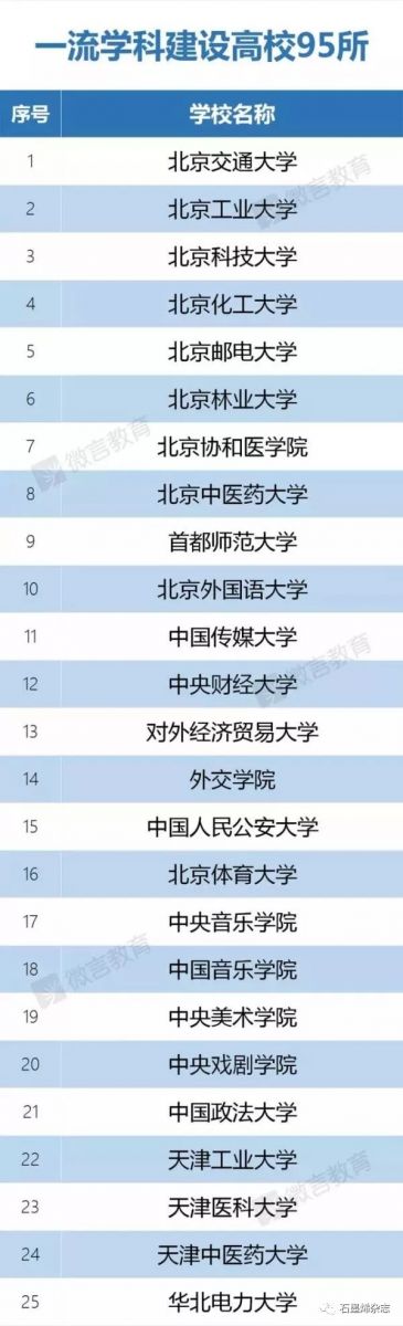 “一流學科建設高校”重在優(yōu)勢學科建設,促進特色發(fā)展,共計95所。除了之前的大部分非985的211大學,主要增加了26所特色明顯的高校。