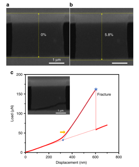 Fig. 2 懸浮石墨烯單層的完全可恢復(fù)彈性應(yīng)變。