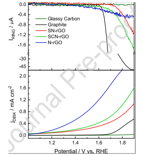 原位拉曼光譜、旋轉(zhuǎn)圓盤電極(RRDE)、循環(huán)伏安法(CV)和線性掃描伏安法(LSV)技術(shù)用于測定石墨和雜原子摻雜的石墨烯催化劑對氧析出反應(yīng)(OER)的催化活性。主要結(jié)果表明,OER除了與電解質(zhì)介質(zhì)的相互作用外,還受到摻雜劑的性質(zhì)和數(shù)量的強烈影響,這也決定了A