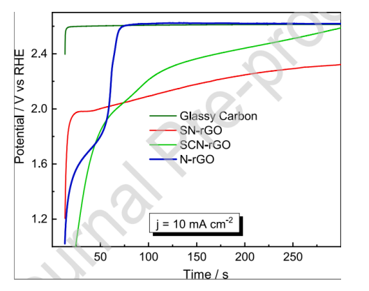 Figure 3. 在25°C下,0.1 M NaOH中,以10 mA/cm