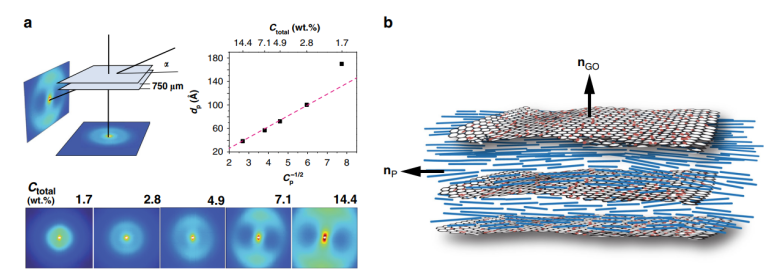 Figure 2. (a)來(lái)自流體PBDT+GO混合物的小角度X射線散射。(b)在