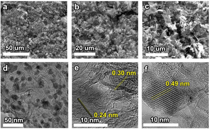 2/LIG的SEM圖像和(d-f)高分辨率的TEM圖像。