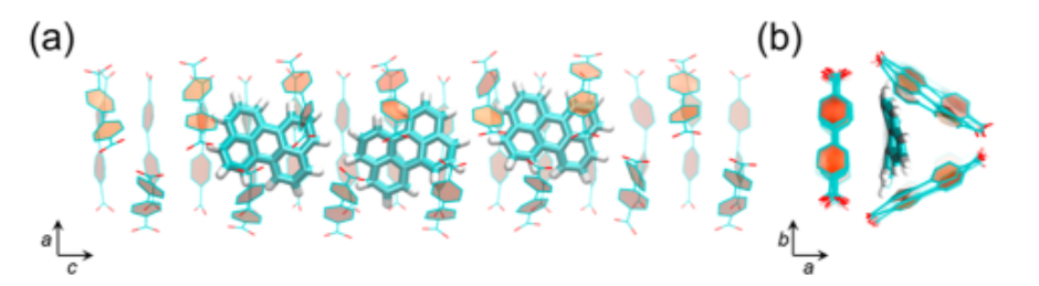 Figure 5. 沿著 (a)b軸方向和 (b) c軸方向視角,PER的 MD結(jié)構(gòu)。