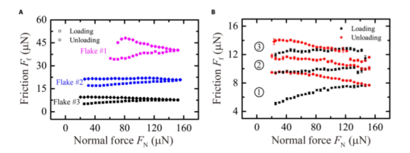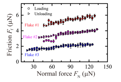 Fig. 3. 石墨/云母異質(zhì)結(jié)經(jīng)RH ~60%處理后的摩擦力實(shí)驗(yàn)測(cè)量。