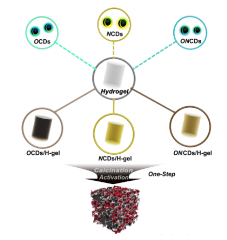 Figure 1. 用商業(yè)的PAMG和不同種類的CDs 制備HPC 材料的過程示意圖。