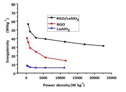 3納米復(fù)合材料也已被制造用于不對稱超級電容器器件(ASD)系統(tǒng)。根據(jù)電化學(xué)阻抗譜(EIS),RGO/LaAlO