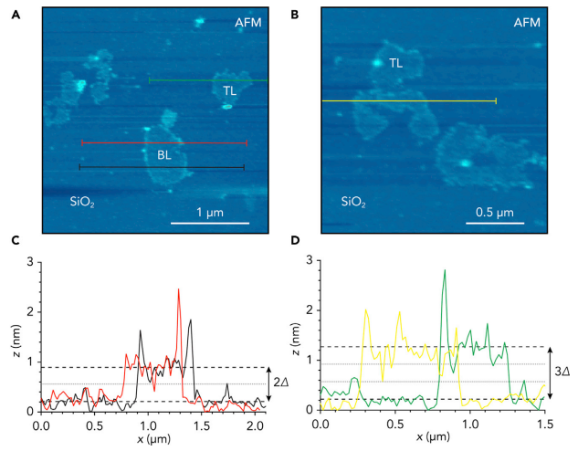 2基底上化學剝落的雙層和三層cGNR-COF薄片