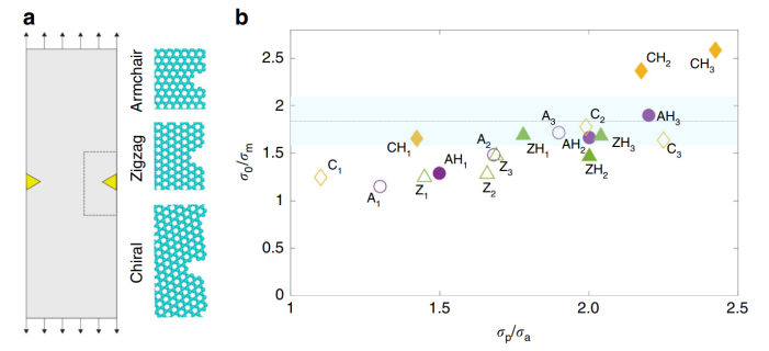Figure 4. 獨(dú)立式石墨烯斷裂的分子動(dòng)力學(xué)模擬。