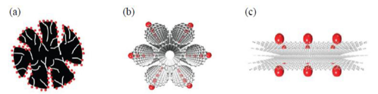 Figure 2. 可用作EC電極的碳材料比較:a)活性碳、b)碳納米管、c)石墨烯。