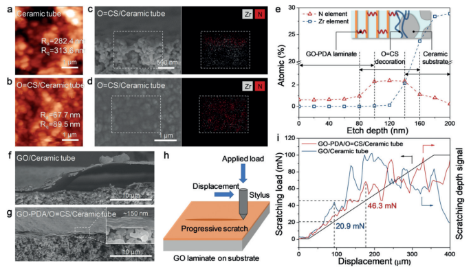 Figure 3. 界面長(zhǎng)鏈分子橋接GO膜的粘附特性。