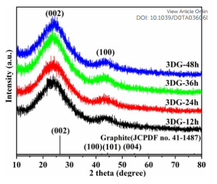 Figure 2. 合成的3DG和商業(yè)石墨的XRD圖譜。