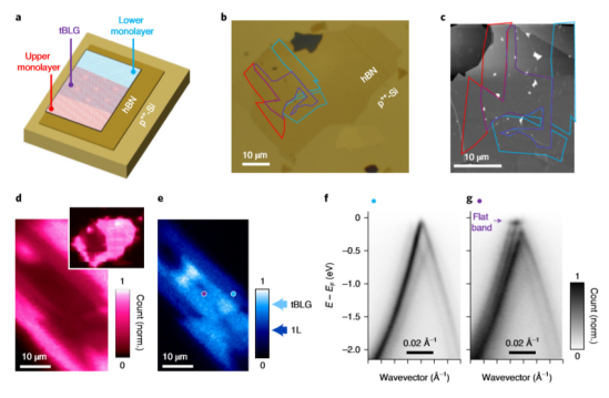 Fig. 3 tBLG的電子結(jié)構(gòu)和平帶色散的可視化。