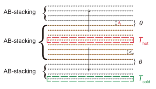 這里,發(fā)現(xiàn)了石墨的均質(zhì)扭曲堆疊層的導(dǎo)熱性強(qiáng)烈依賴于失配角度,可能的機(jī)制依賴于扭曲界面上的聲子-聲子耦合作用。窄石墨疊層所計算的熱導(dǎo)率和相應(yīng)的實驗結(jié)果的一致性表明了該預(yù)測的可行性。這歸因于層間相互作用描述的準(zhǔn)確性,h-BN堆疊層的相似結(jié)果表明整體材料的電導(dǎo)率更高和失配角度變化減少。這為設(shè)計合成具有可控傳熱特性的可調(diào)異質(zhì)結(jié)開辟了新路徑。