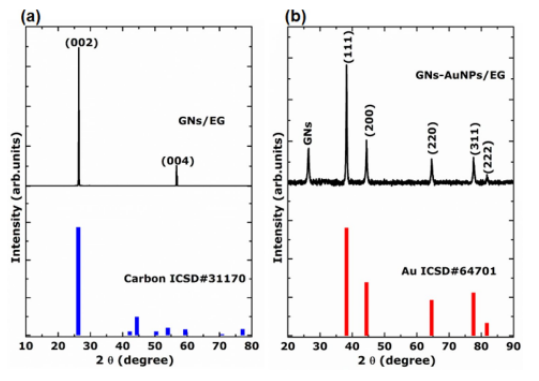 這里,報(bào)道了金納米顆粒(Au NPs)修飾石墨烯納米片(GNs)基納米流體的合成及導(dǎo)熱性質(zhì)。其具體合成過程是通過納秒脈沖Nd:YAG激光(波長= 1,064 nm)燒蝕在乙二醇(EG)基礎(chǔ)液中的石墨靶,隨后金靶,以獲得GNs-AuNPs/EG雜化納米流體。通過一系列表征發(fā)現(xiàn),結(jié)晶的Au NPs修飾片狀的GNs,其平均粒徑為6.3 nm。在25–45°C溫度范圍內(nèi)的熱導(dǎo)率分析表明, GNs-AuNPs/EG雜化納米流體的導(dǎo)熱系數(shù)為0.41 W/mK,高于GNs/EG(0.35 W/mK),Au NPs/EG(0.39 W/mK)納米流體,以及EG基礎(chǔ)液(0.33 W/mK)。其導(dǎo)熱性能的提高可歸因于Au NPs和石墨烯片之間的協(xié)同效應(yīng)。所合成的GNs-AgNPs/EG雜化納米流體有望應(yīng)用于熱量轉(zhuǎn)移技術(shù)領(lǐng)域。此外,這項(xiàng)工作還提出了一種制備石墨烯-金屬納米復(fù)合材料的綠色合成方法。