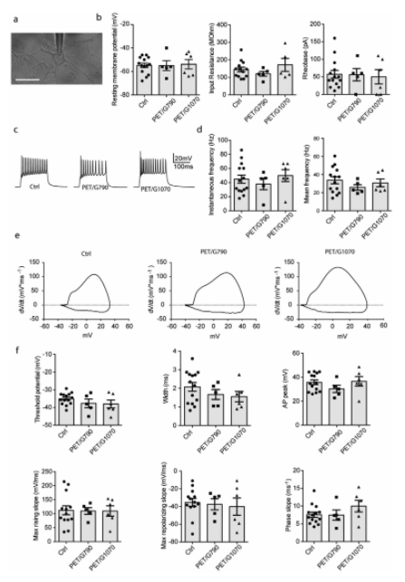 Figure 5. 生長在不同石墨基底上的原代神經元的被動和主動特性。