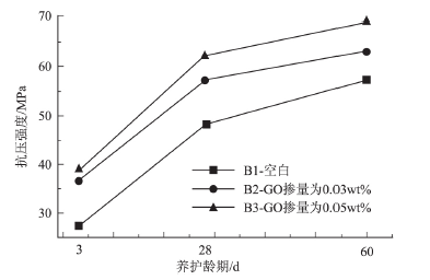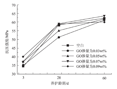 2)將GO 與聚羧酸復(fù)合制備出的復(fù)合材料,對強(qiáng)度的提高在20%以上,且GO 的摻入量為水泥的0. 05wt%就可以得到很好的強(qiáng)度結(jié)果。