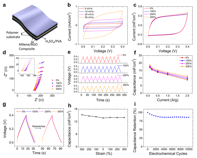 4/PVA)凝膠電解質(zhì)的可拉伸超級(jí)電容器的電化學(xué)性能。