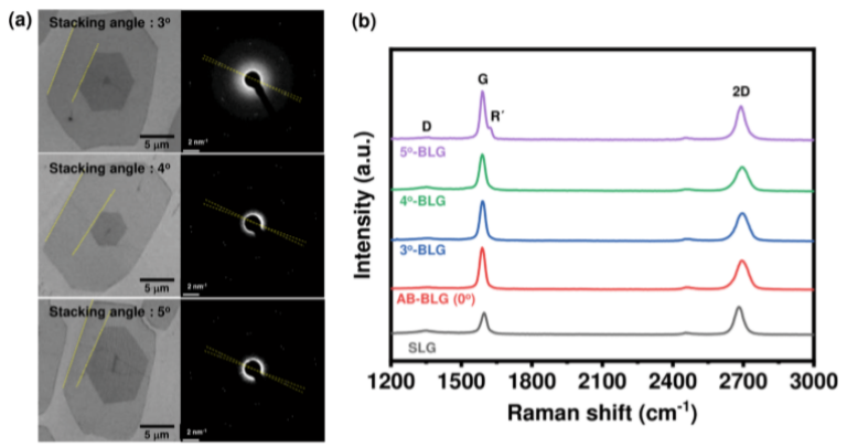 Fig. 3 小角度扭曲BLG的結(jié)構(gòu)和光譜表征。