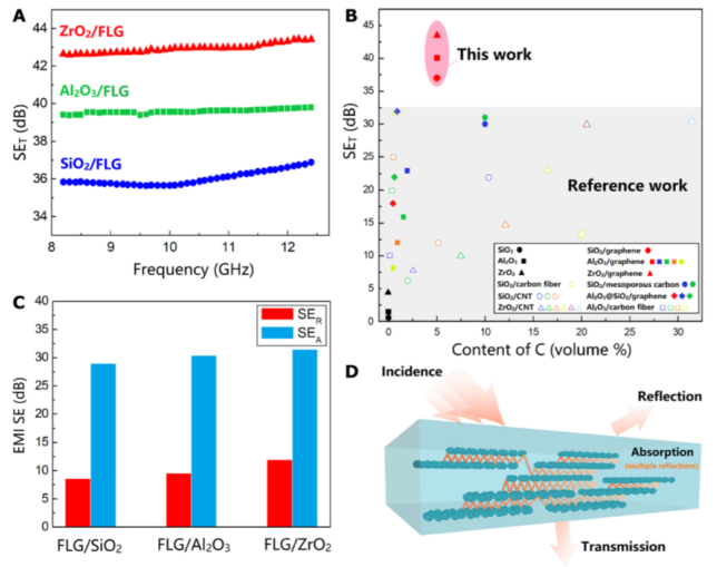 Fig. 5. FLG/陶瓷復(fù)合材料的EMI屏蔽效能(SE)。