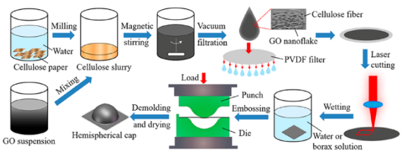 Figure 1. GO-纖維素半球形帽的構建步驟。