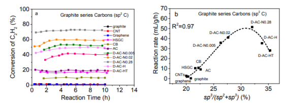 2定向碳催化劑的(a)催化性能;(b)反應(yīng)速率與sp