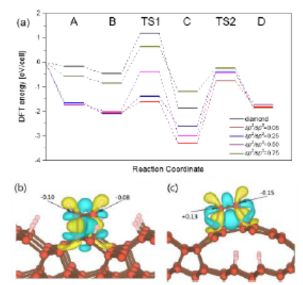 3比的碳材料的反應(yīng)途徑;金剛石(111)表面上C