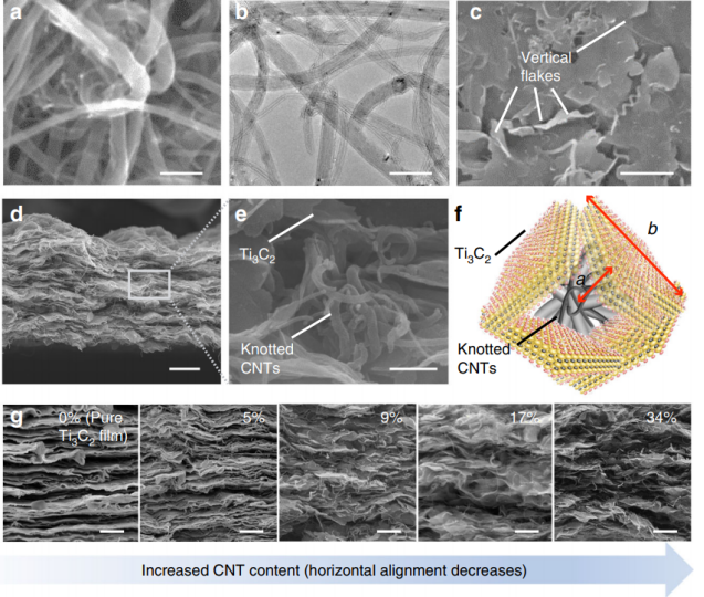 相關(guān)研究成果于2020年由華中科技大學(xué)Ming Xu課題組,發(fā)表在Nature Communications (https://doi.org/10.1038/s41467-020-19992-3)上。原文:Maximizing ion accessibility in MXene-knotted carbon nanotube composite electrodes for high-rate electrochemical energy storage。