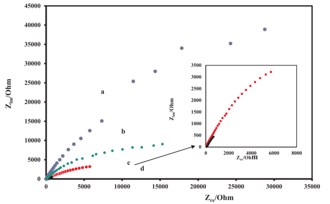 4-rGO/CPE(d)的Nyquist阻抗圖。
