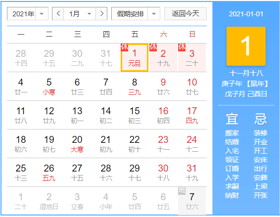 根據(jù)國(guó)務(wù)院辦公廳通知精神,2021年元旦從1月1日(星期五)至1月3日(星期日)放假,共3天。