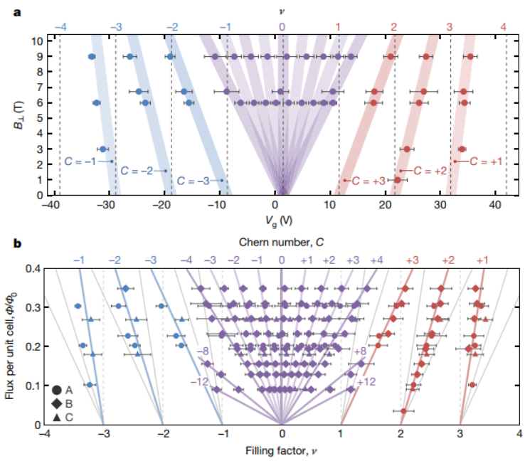 Fig. 3 強(qiáng)相關(guān)的Chern絕緣相的量化磁場響應(yīng)。