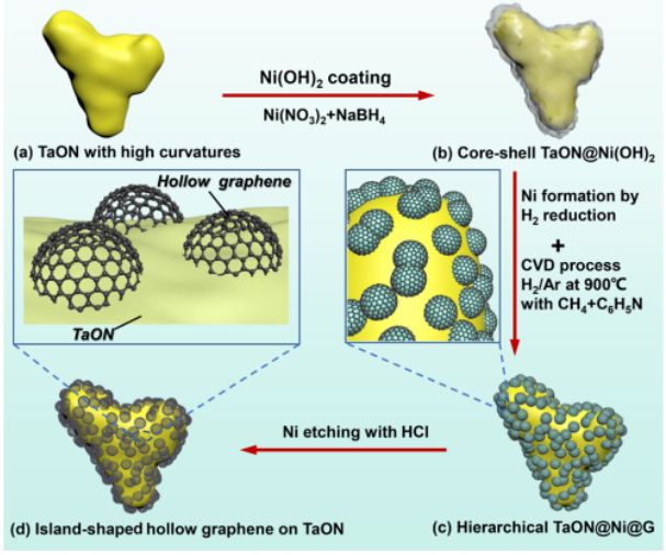 杭州電子科技大學(xué)Lang Pei課題組--TaON上原位生長島狀空心石墨烯具有空間分隔的活性位點(diǎn),實現(xiàn)增強(qiáng)的可見光二氧化碳還原