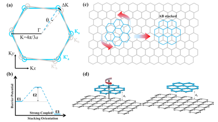 Figure 5. 雙層石墨烯中的電子帶結(jié)構(gòu)和旋轉(zhuǎn)