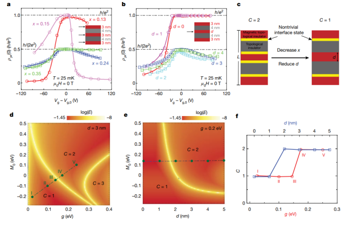 Fig. 3 無磁拓撲絕緣體多層結(jié)構(gòu)中高C QAH態(tài)的證明。