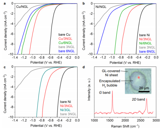 Fig. 2 石墨烯覆蓋的Cu和Ni板的HER活性。