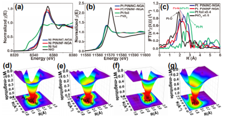 Figure 3 PtNiNC-NGA和PtNiNF-NGA的X射線在邊緣結(jié)構(gòu)附近的吸收(XANES)χ(E)