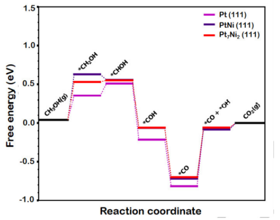 Figure 5在Pt (111) 表面發(fā)生甲醇氧化的自由能圖。
