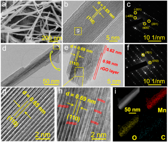 2納米線間距的晶格畸變,從而可以更快地轉(zhuǎn)移Kand Na離子,而且還可以在rGO和MnO